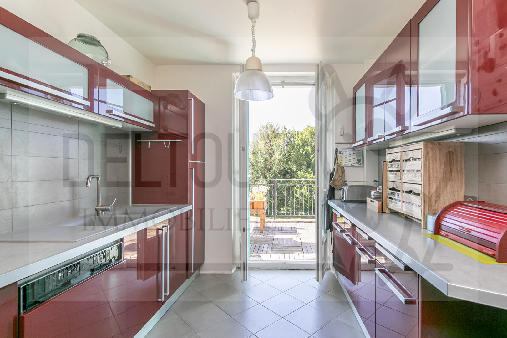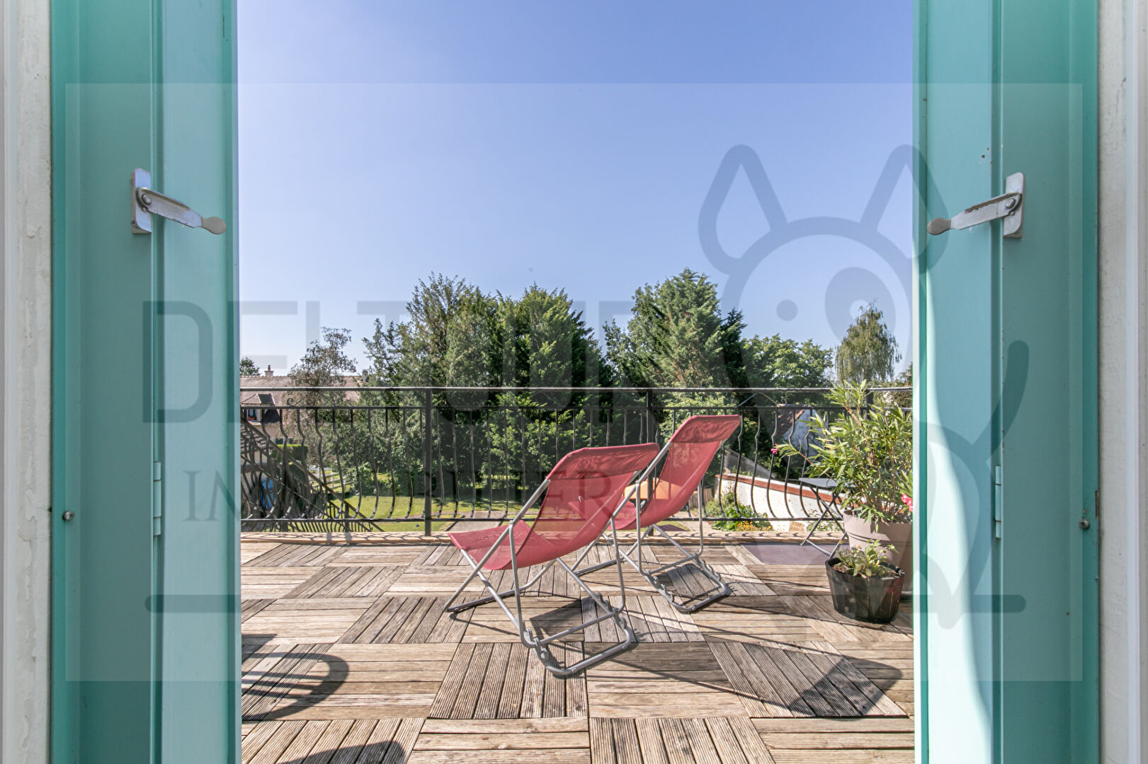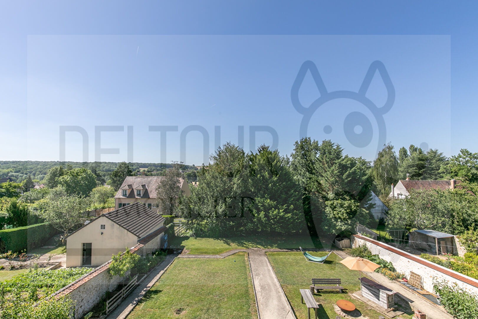En rdc : entrée, salon, double séjour, cuisine, grande terrasse plein sud donnant sur le jardin  parfaitement entretenu, clos et arboré.
