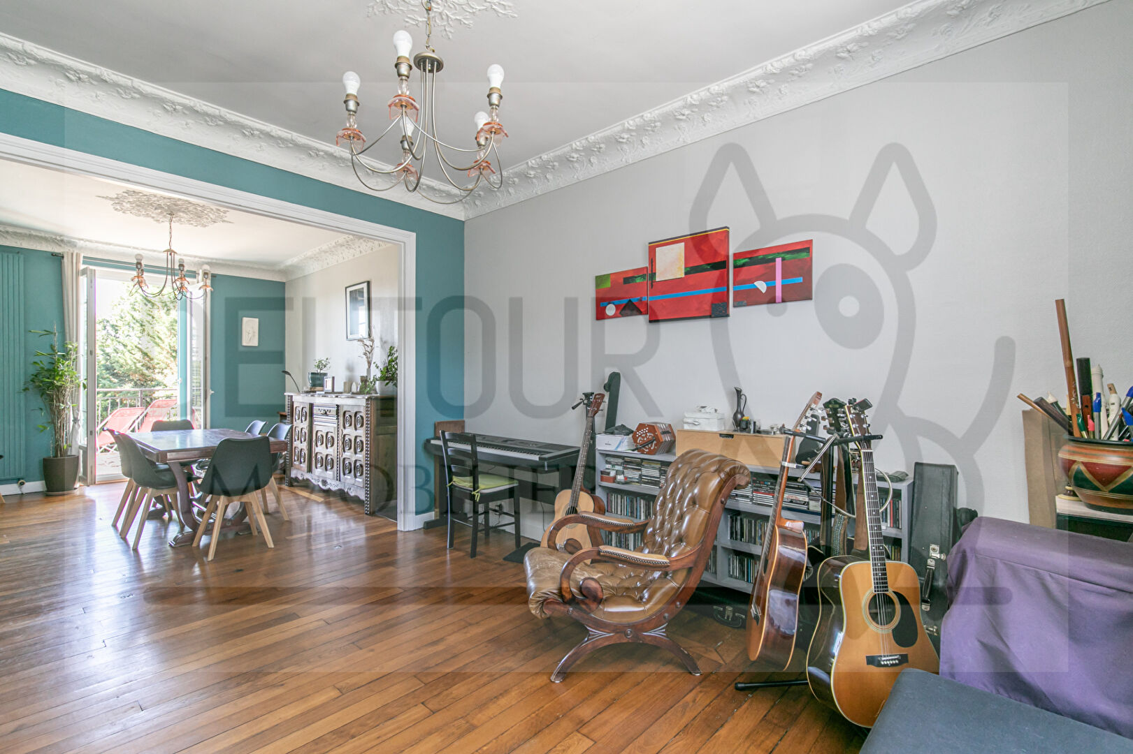 Au 1er : 3  grandes chambres avec parquet authentique, 1 bureau (ou dressing), salle de bain avec baignoire balnéo, et wc séparé.