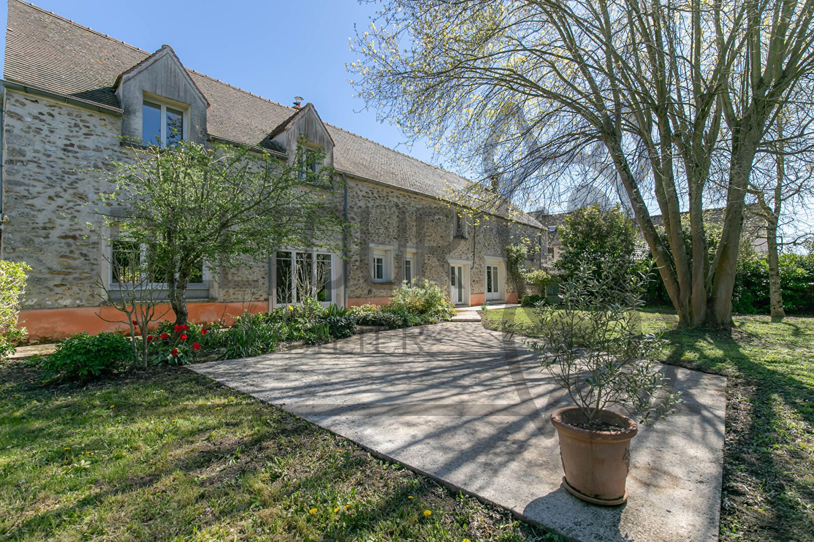 Édifiée sur un terrain clos de murs en pierres meulières de 1 070 m², à l'abri des regards, cette propriété offre un cadre de vie intimiste et authentique, idéal pour les amateurs de biens de caractère.