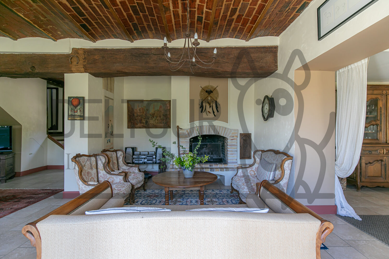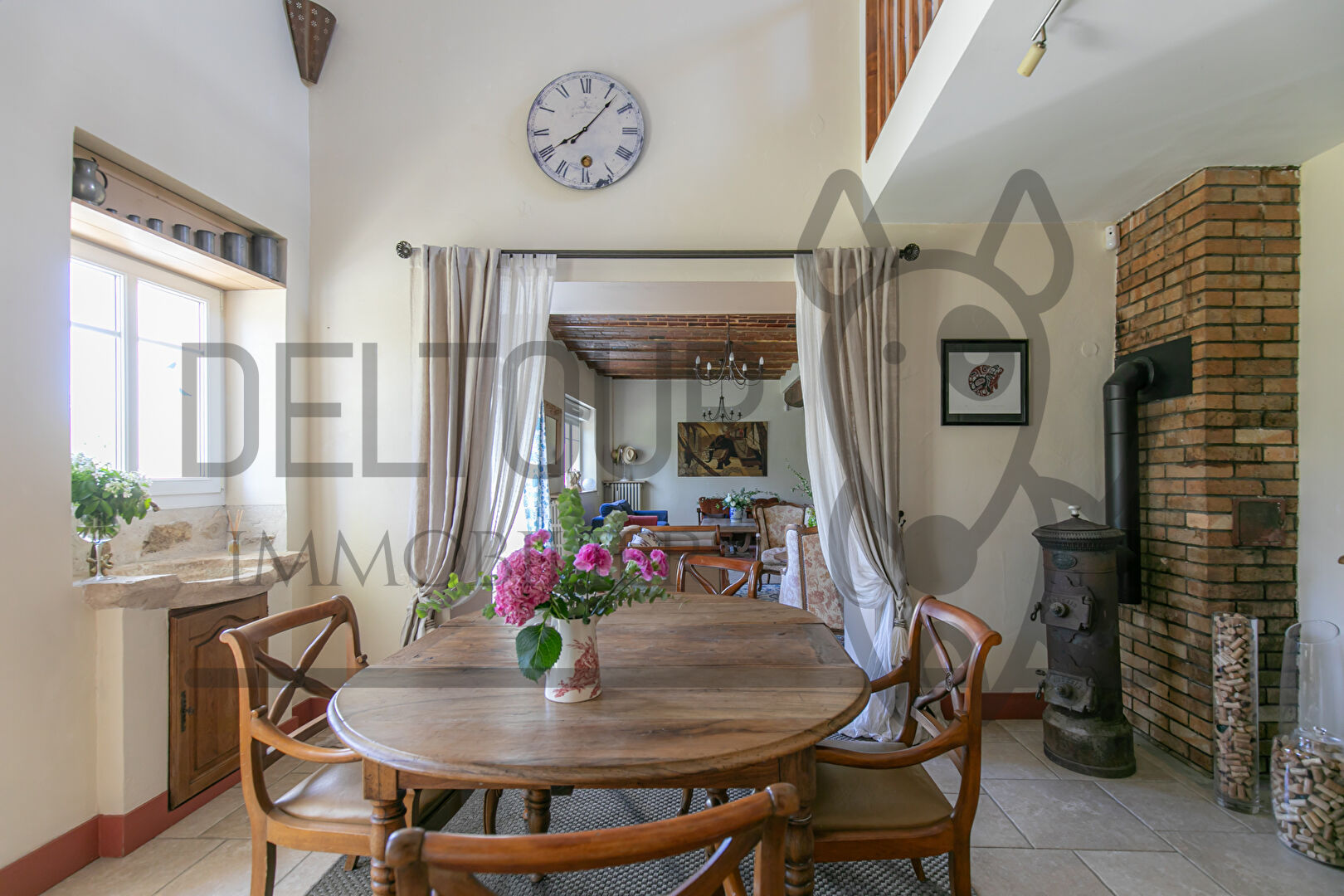 Le rez-de-chaussée dévoile de magnifiques espaces de réception : une cuisine dinatoire, une salle à manger avec mezzanine apportant volume et singularité, ainsi que deux salons, dont l'un agrémenté d'une cheminée pour des instants feutrés et conviviaux, ainsi qu'une jolie poutre remarquable.