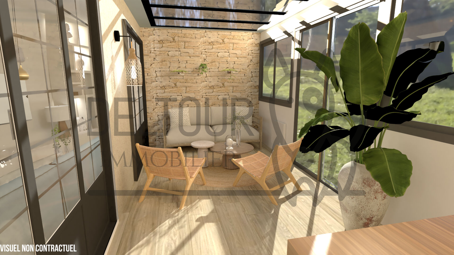 La visite se poursuit avec la dépendance composée d'une pièce de vie lumineuse, d'un coin cuisine, d'une salle d'eau avec WC et d'une chambre. La toiture de celle-ci a été entièrement refaite pendant les travaux d'aménagement.