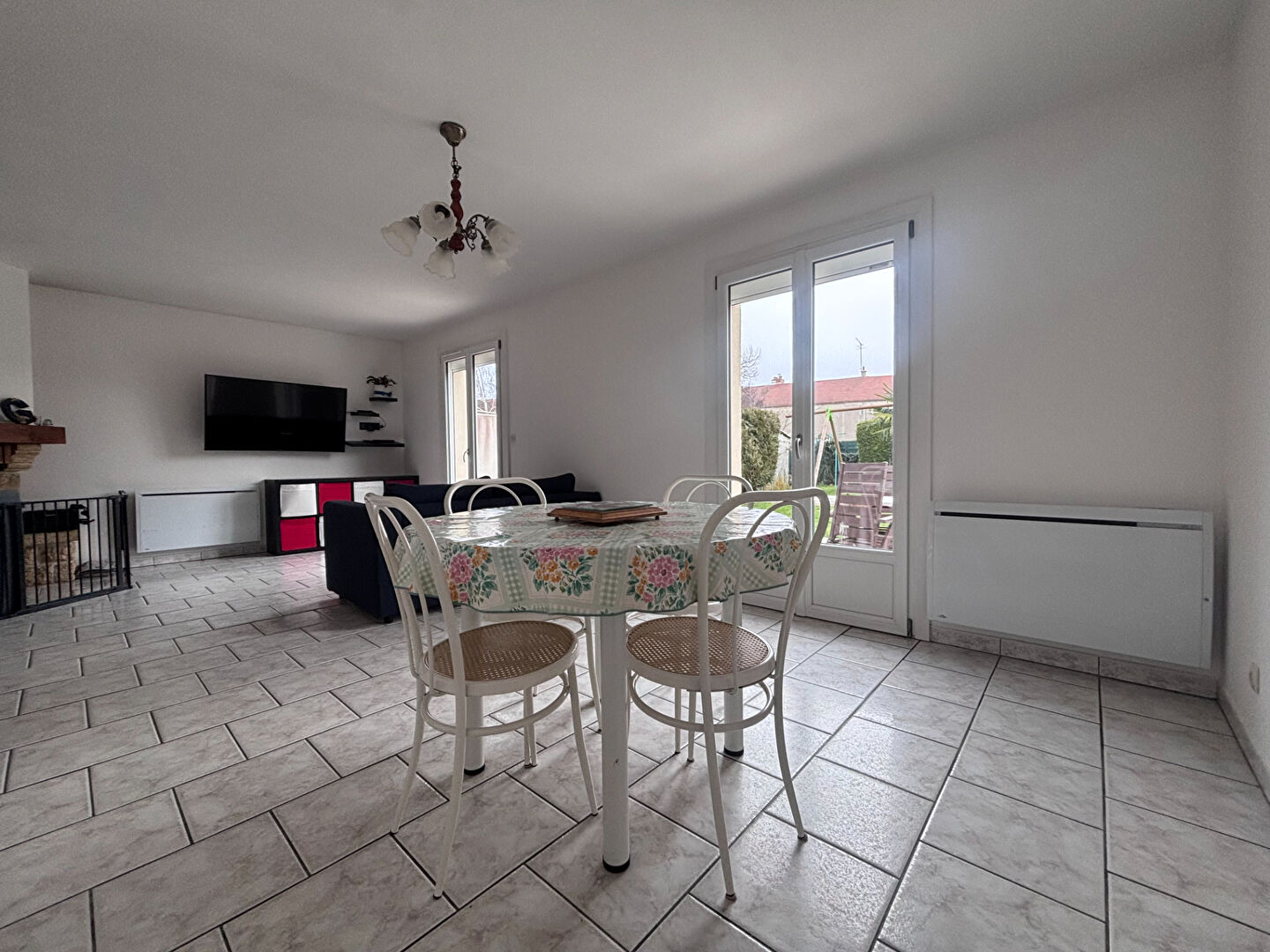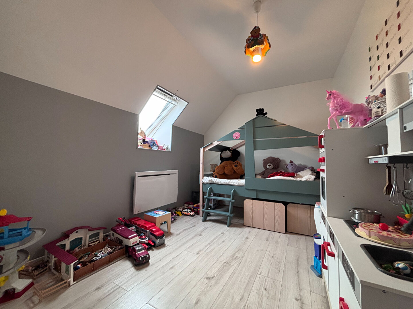 Au rez-de-chaussée, la maison offre une entrée, un séjour/salon chaleureux avec cheminée insert, une cuisine aménagée et équipée récente, un cellier/buanderie, ainsi qu'un bureau, idéal pour le télétravail ou une chambre d'appoint.