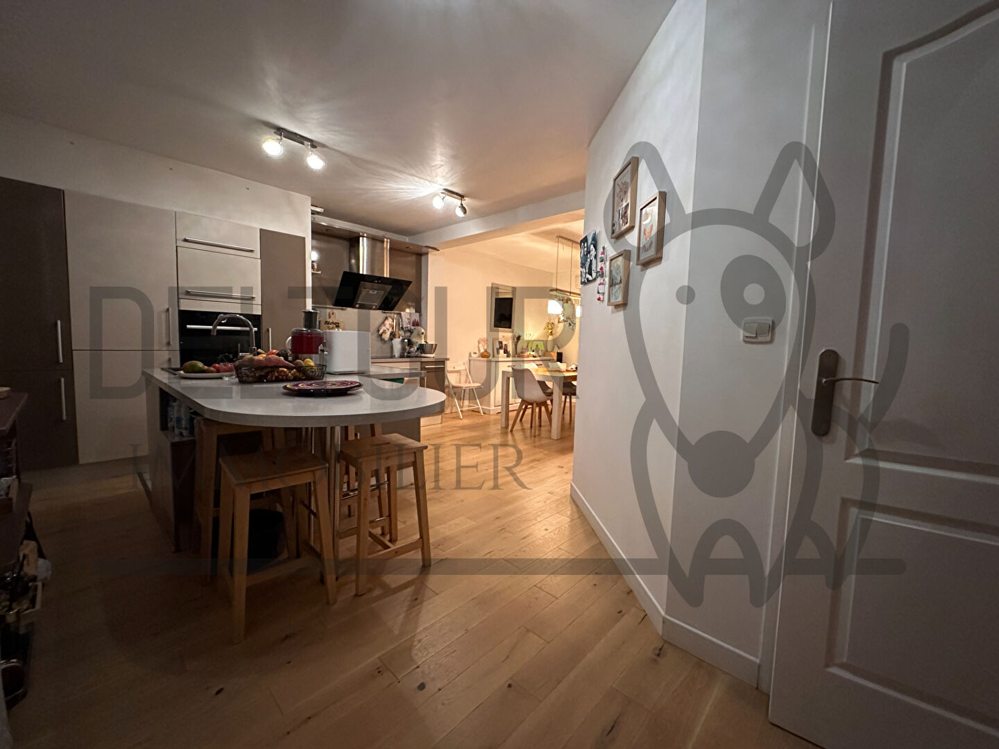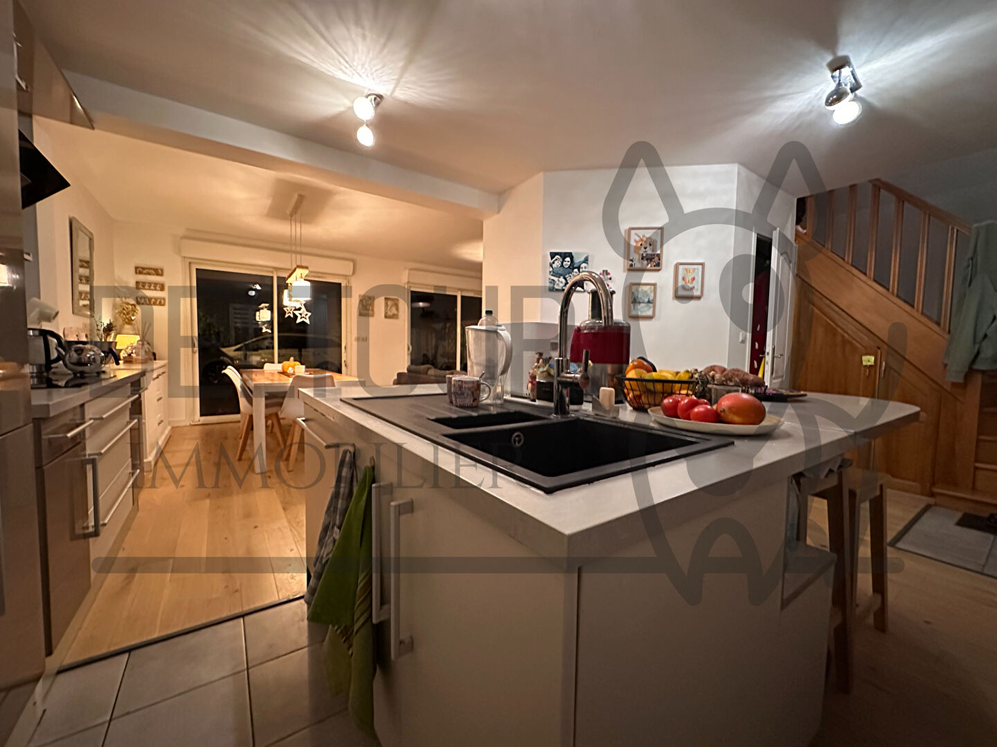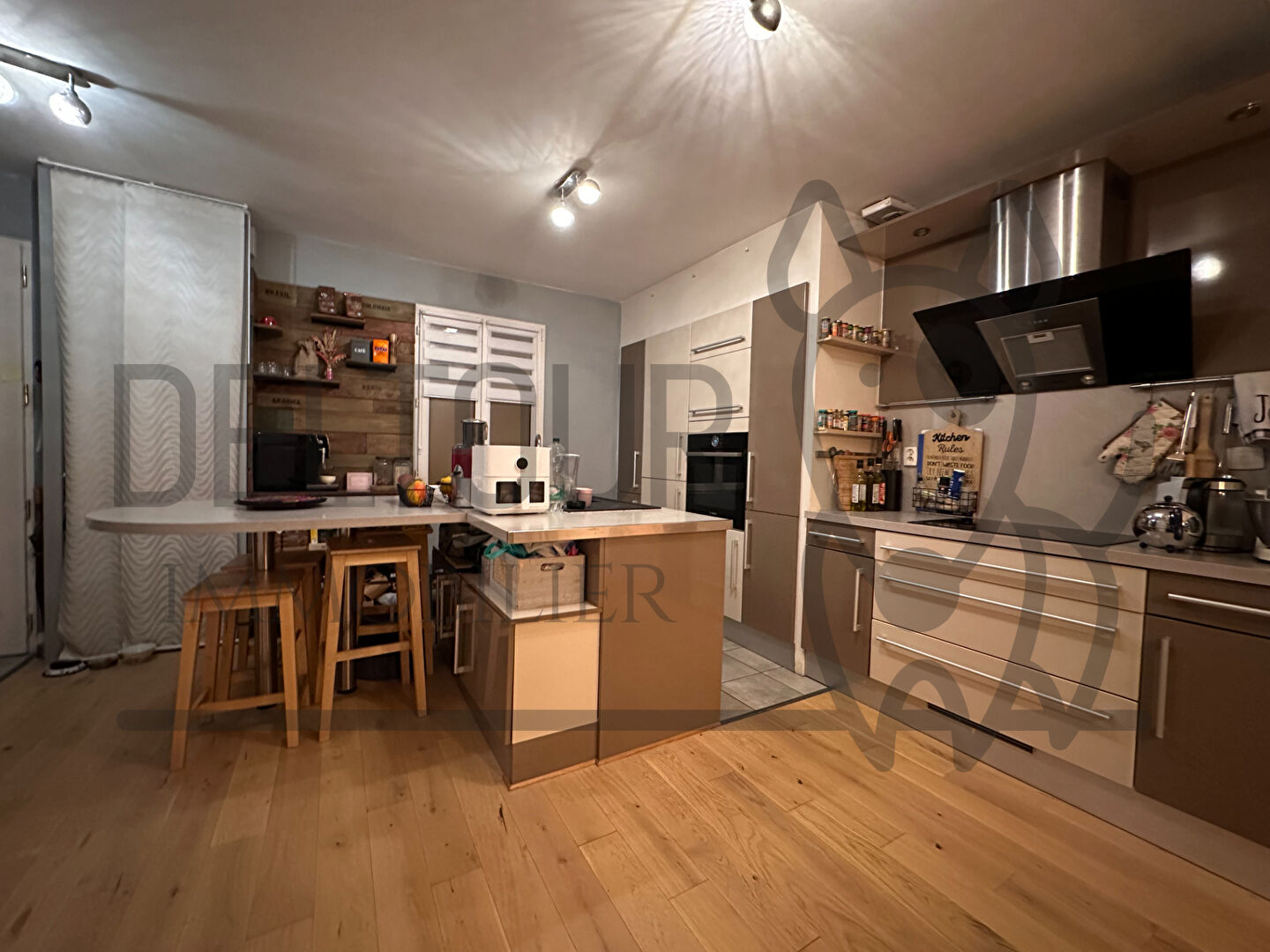 mais aussi, une cuisine aménagée et équipée ouverte (hotte, four, LV, plaque induction, réfrigérateur) avec ilot central et un petit coin spécial "café", une buanderie/cellier et un toilette avec lave-mains,